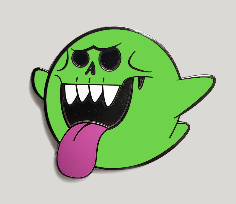 1.75″ enamel pin 7/10 white 1/10 green 1/10 red 1/10 black In stock now